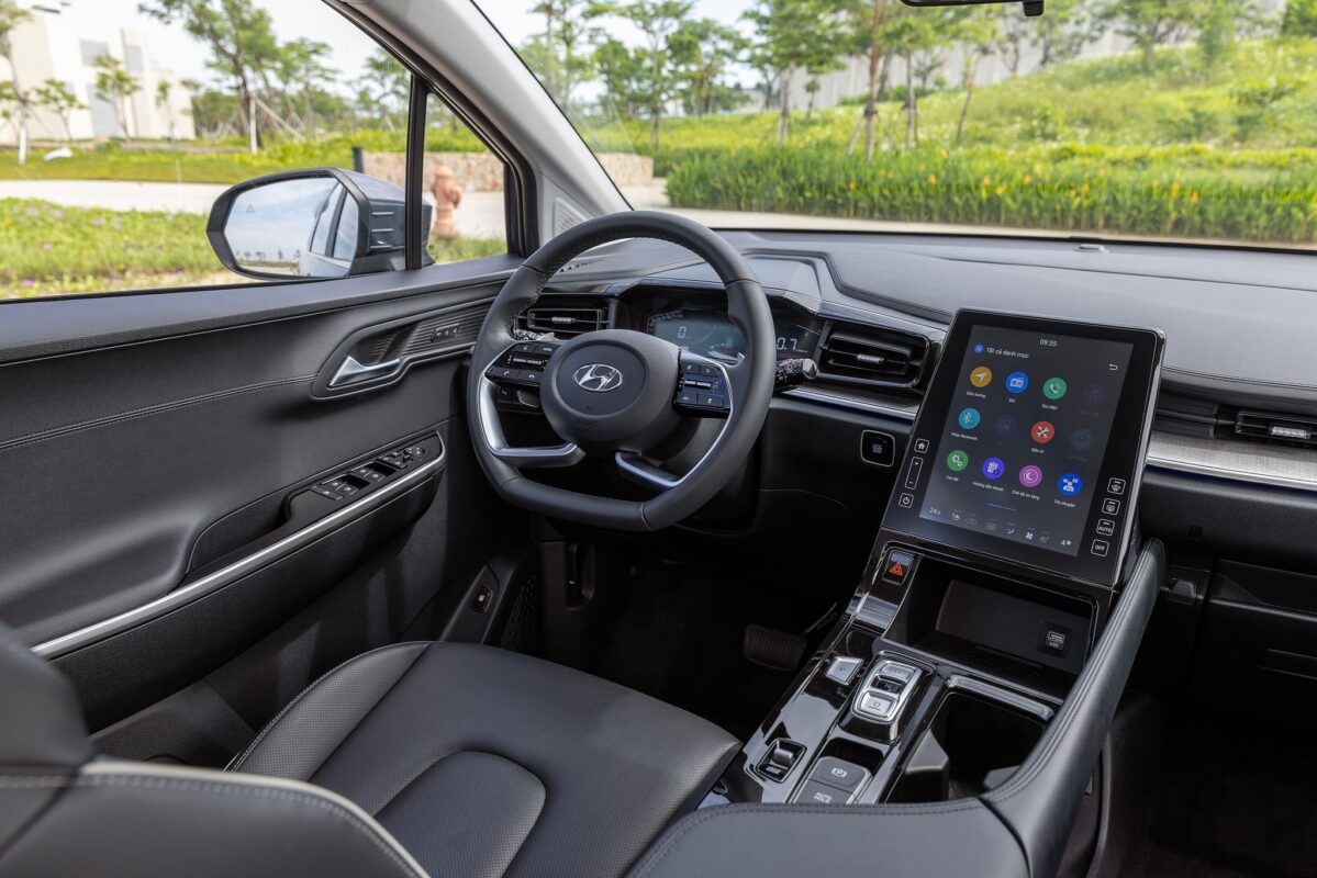 Hyundai Custin có thiết kế bảng điều khiển xe hướng về phía người lái, tạo nên tính công thái học dễ dàng sử dụng. Xe có màn hình cảm ứng 10.4 inch dạng dọc, tích hợp điều khiển các chức năng
