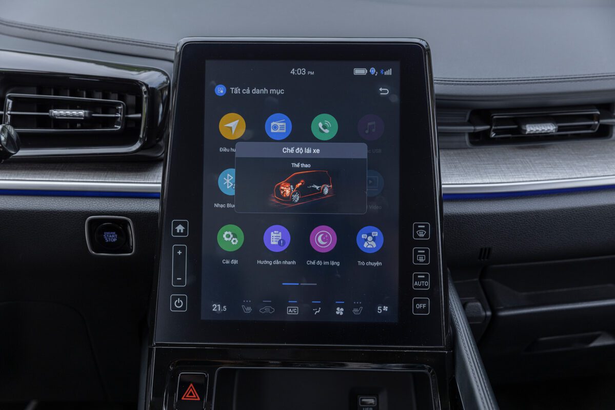 Hyundai Custin được trang bị Drive Mode 4 chế độ lái Eco (tiết kiệm) – Comfort (thỏa mái) – Sport (thể thao) – Smart (thông minh) hệ thống sẽ trực tiếp can thiệp vào các hệ thống truyền động của xe: vô lăng, hộp số, chân ga,… nhằm tạo ra sự khác biệt về cảm giác lái cũng như khả năng hoạt động của xe
